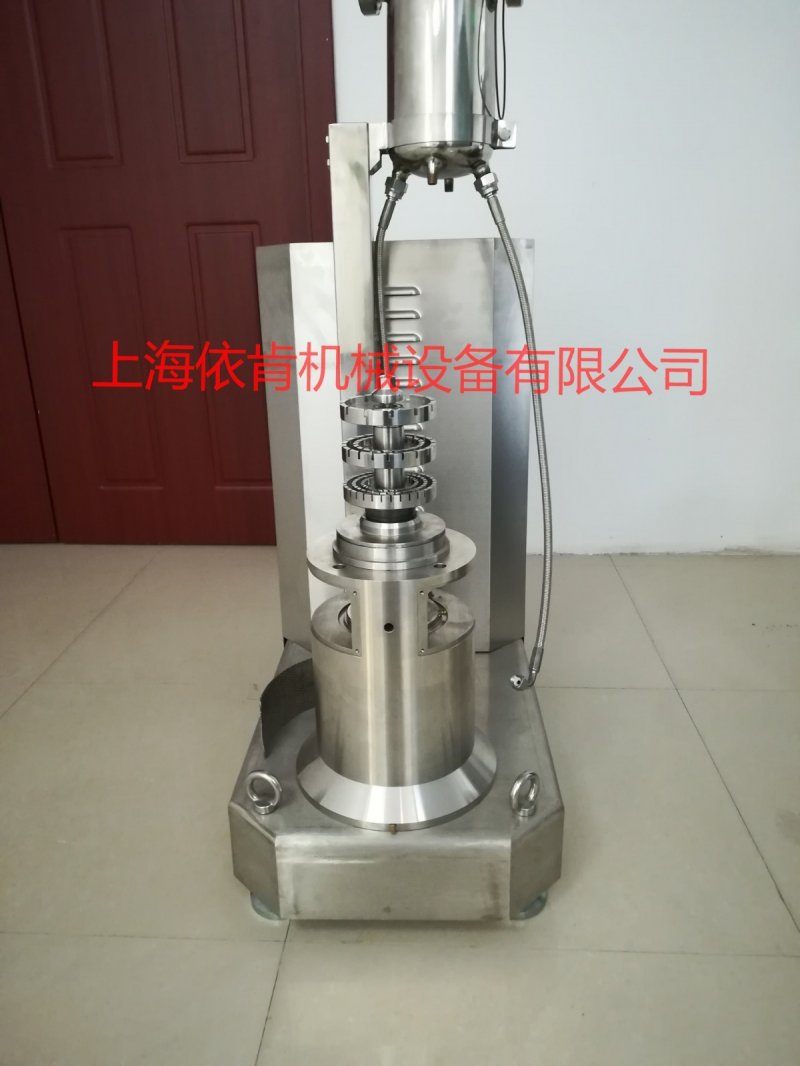 IKN分散机采取直立式设计,由1-3个工作腔组成,在马达的高速驱动下,物料在转子定子之间狭窄间隙中高速运动,形成紊流,物料受到更强液力剪切、离心挤压、高速切割、撞击和研磨等综合作用,从而达到分散、乳化、破碎的效果。被加工的物料本身和物理性质和工作腔的数量以及控制物料在工作腔中停留的时间决定物料粒径的分布范围及均化、细化的效果和产量大小。